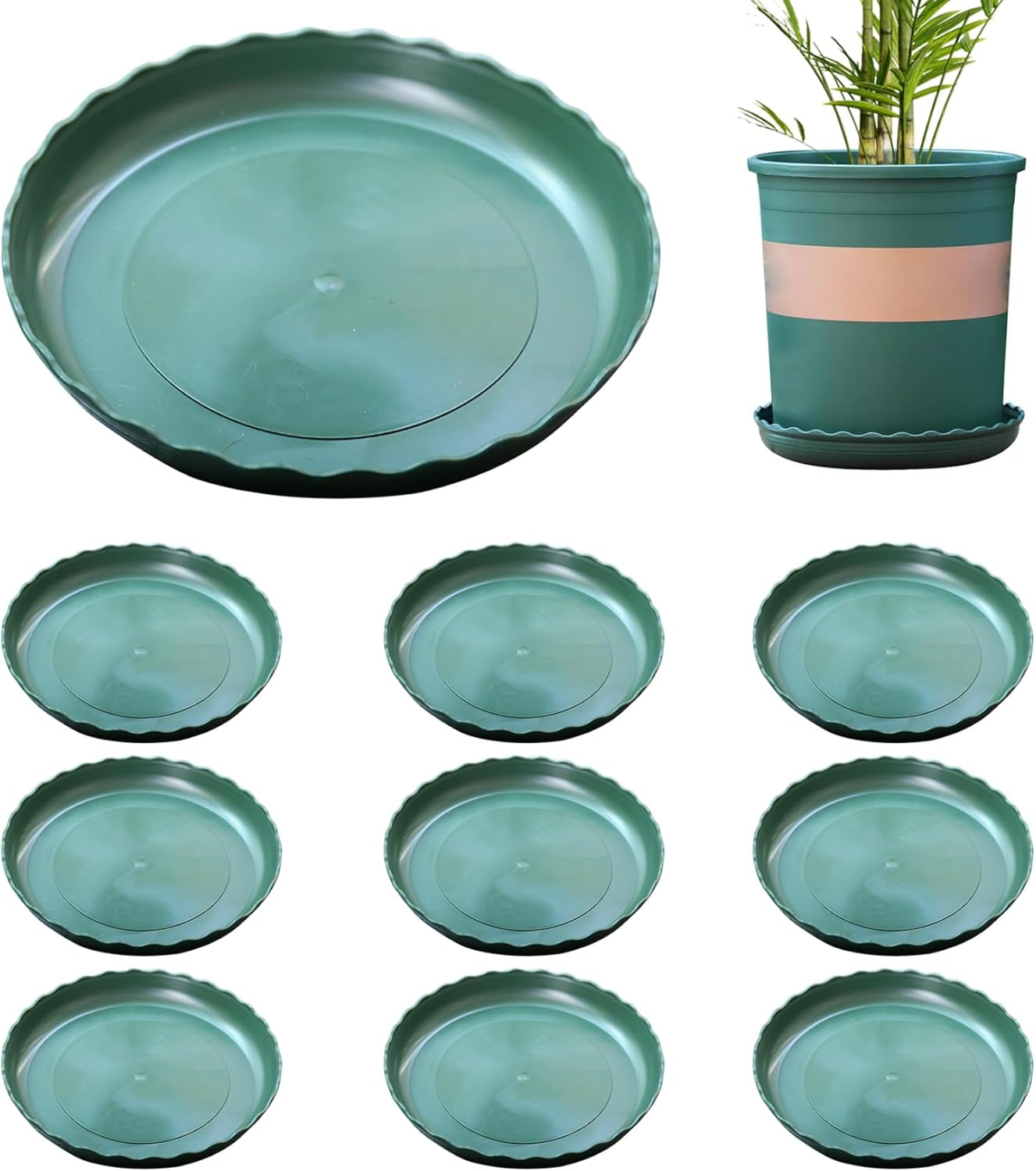 Description: Flower Pot Drip Trays measure up to 12 inches in diameter and can accommodate most sizes of pots, and our drip trays are fully covered to catch excess water and prevent spills.Plant Trays for Pots are made of thick, heavy-duty plastic that can withstand the weight of a variety of sizes of pots and are resistant to wear and tear.Plant Water Catcher Trays are suitable for both indoor and outdoor gardening. It protects your floors and surfaces from water damage and soil while keeping your garden space neat and organised. Features:. Plant Saucer. -Color: Green. -Material: Plastic. -Size: Diameter 30cm/11.81 inch. Note: Manual measurement, please allow slight errors on size. The colors may exist slight difference due to different screens. Package Including 10 * Plant Saucer