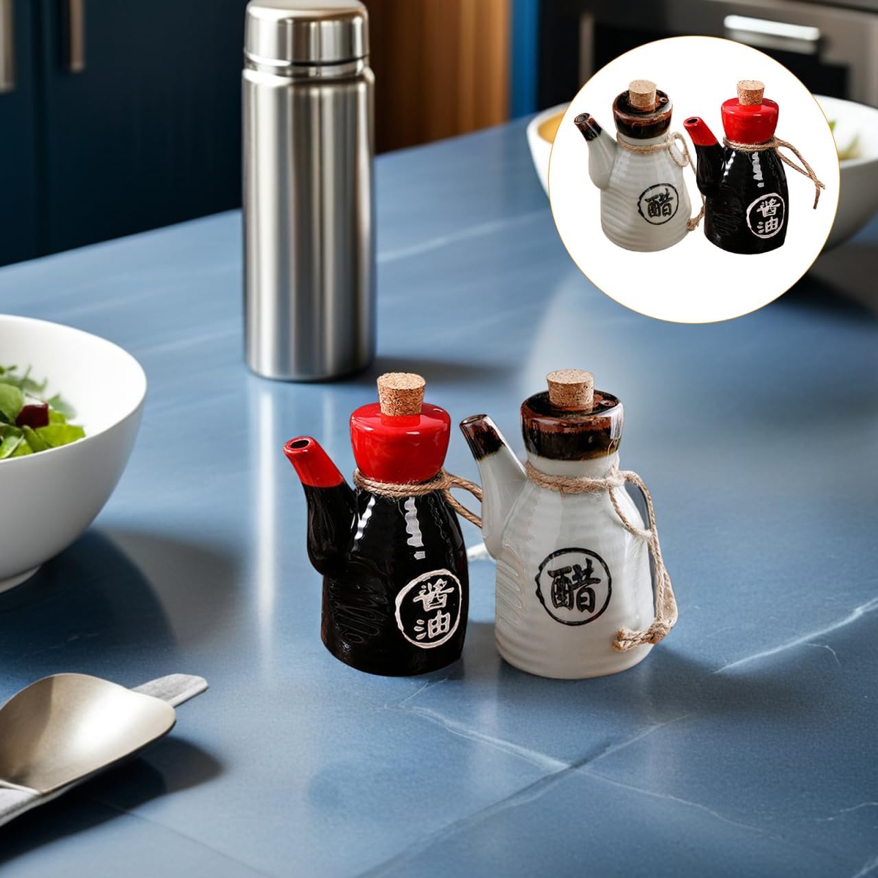 Package Include 2 x Seasoning Bottles Characteristics -Material:Ceramic, Wood Japanese Style Oil Pot - Note: It is vinegar bottle ceramic condiment bottle. -Size(200ml):7.00X7.00X12.50cm/2.75X2.75X4.91in Ceramic Condiment Dispenser -Color:Assorted Color vinegar dispenser kitchen - Fine workmanship, smooth grinding, easy to use, sealed. The bottom is smooth and the placement is more stable porcelain condiment container. - Suitable for storing all kinds of liquid seasoning, easy and convenient to make delicious food japanese oil bottle. - High-class ceramic seasoning bottle is a good helper for cooking in restaurants and kitchens sauce bottle. - seasoning bottle, smooth and material, strong and vinegar container. - workmanship and good a and perfect details Japanese Style Condiment Jar.Goods Descriptionceramic flavor bottle Are you looking for a creative and convenient sauce bottle for your daily cooking use? Our production can meet all your requirements with and reliable use.ceramic seasoning container Designed with lid, making your cooking process more convenient
