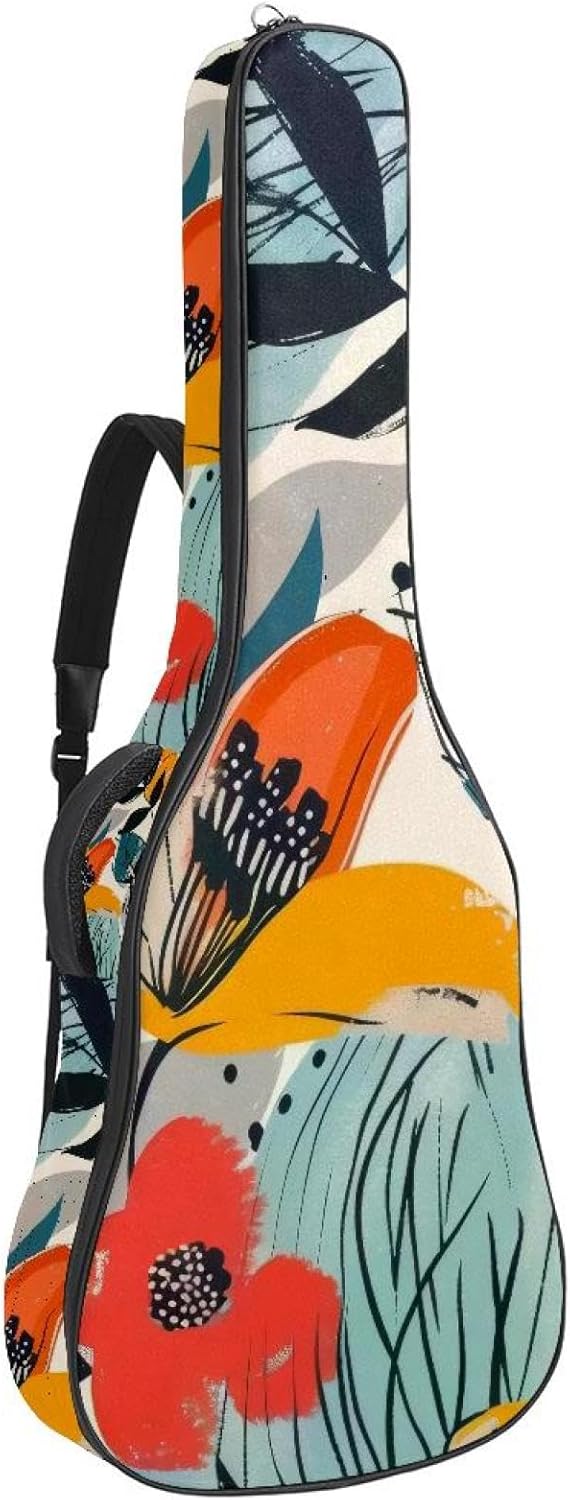 Give your valuable guitar the premium protection it deserves. Our Cute Printed Guitar Gig Bag is engineered for the modern musician who demands both security and convenience. Whether you're heading to a gig, a practice session, or on a short trip, this bag ensures your instrument arrives in perfect condition, ready to play.Constructed from durable, waterproof Oxford cloth, this bag stands up to the elements and the test of time. The interior is a sanctuary for your guitar, featuring ultra-thick padded sidewalls and a soft, anti-scratch lining that cradles your instrument, preventing scratches and damage. The heavy-duty rubber base acts as a shield against everyday bumps and allows for stable placement on any surface.Organization is effortless with multiple dedicated compartments. Two main storage pockets keep all your essential accessories—like a foldable music stand, tuner, picks, cables, and extra strings—neatly sorted and easily accessible. Never fumble for your tablet or sheet music again; the specially designed back pocket keeps them safe and separate.For a perfect, secure fit, the adjustable neck support and internal Velcro strap ensure your guitar does not shift around inside the bag, providing peace of mind with every carry.Care Instructions: To preserve the quality and appearance of your gig bag, please do not machine wash. Simply wipe clean with a damp cloth to remove any dirt or stains.
