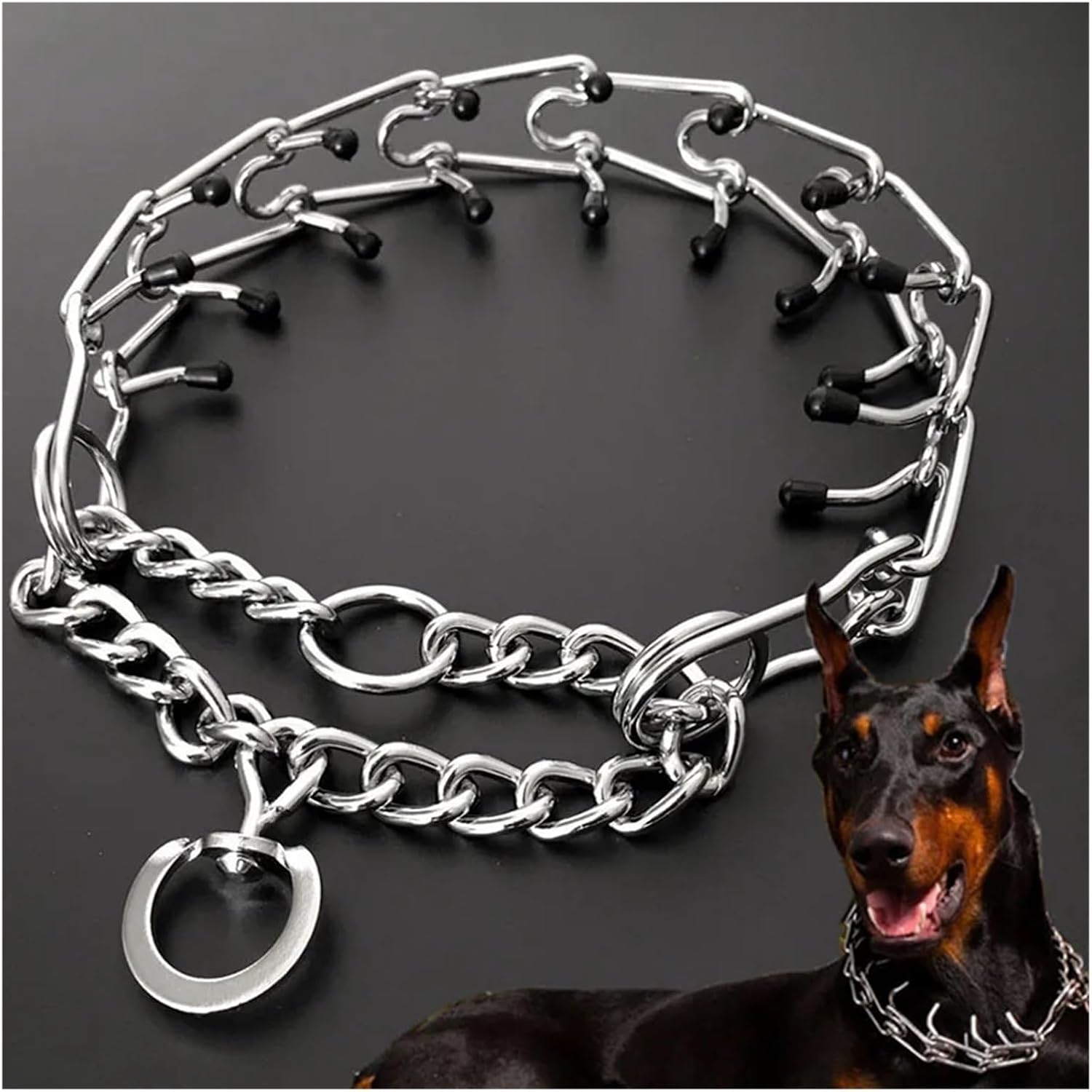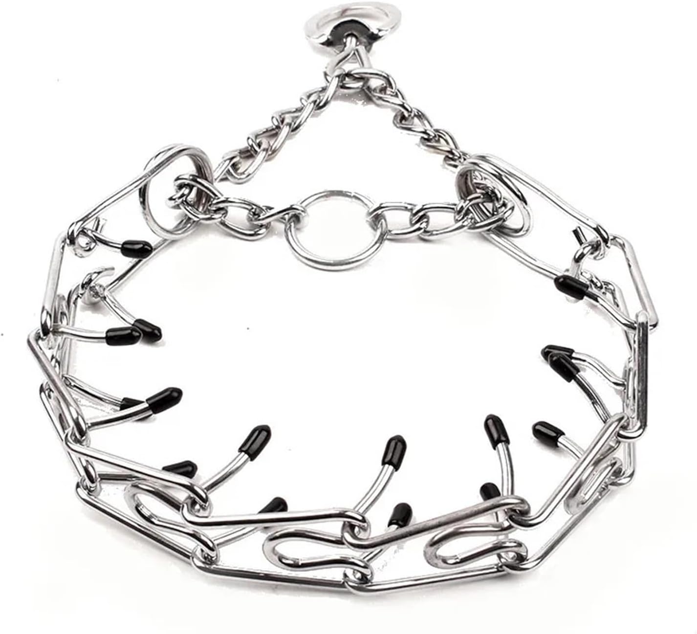 This training collar integrates soft rubber tips over its contact surfaces to ease pressure during leash guidance. Its adjustable links enable a tailored fit, while the stainless steel build offers reliable performance. The detachable structure simplifies putting on and taking off the collar. Suitable for leash-based direction and behavior reinforcement during walks, the collar focuses on functional use in daily training scenarios. Designed to be straightforward in application, it serves as a tool for directing movements and encouraging responsive habits.
