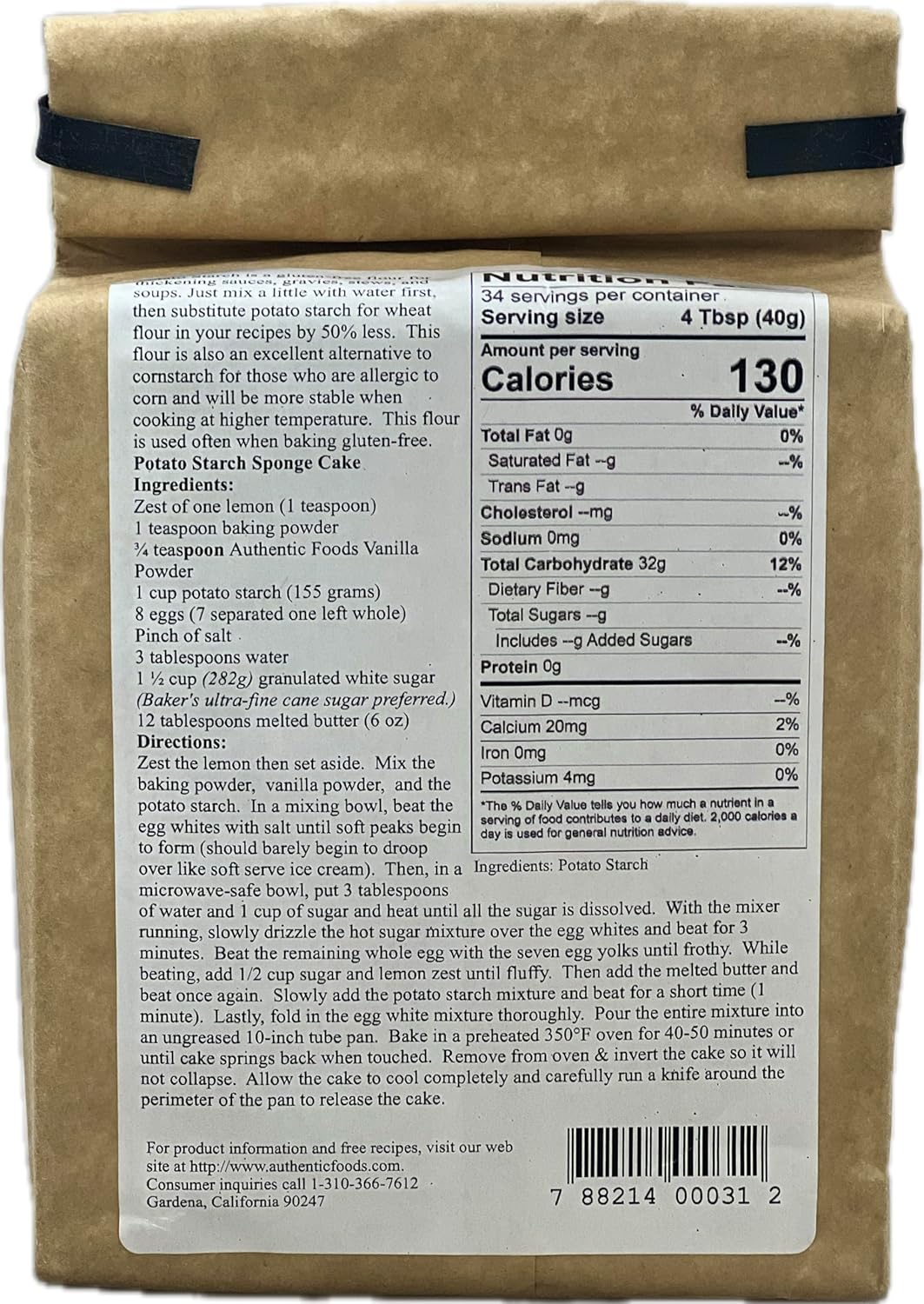 The Authentic Foods Potato Starch is Non-GMO and is manufactured domestically. This is a great starch to use in gluten-free baking and cooking for sauces, gravies, stews and thickened soups. Making baked goods with potato starch will add volume to your finish goods.