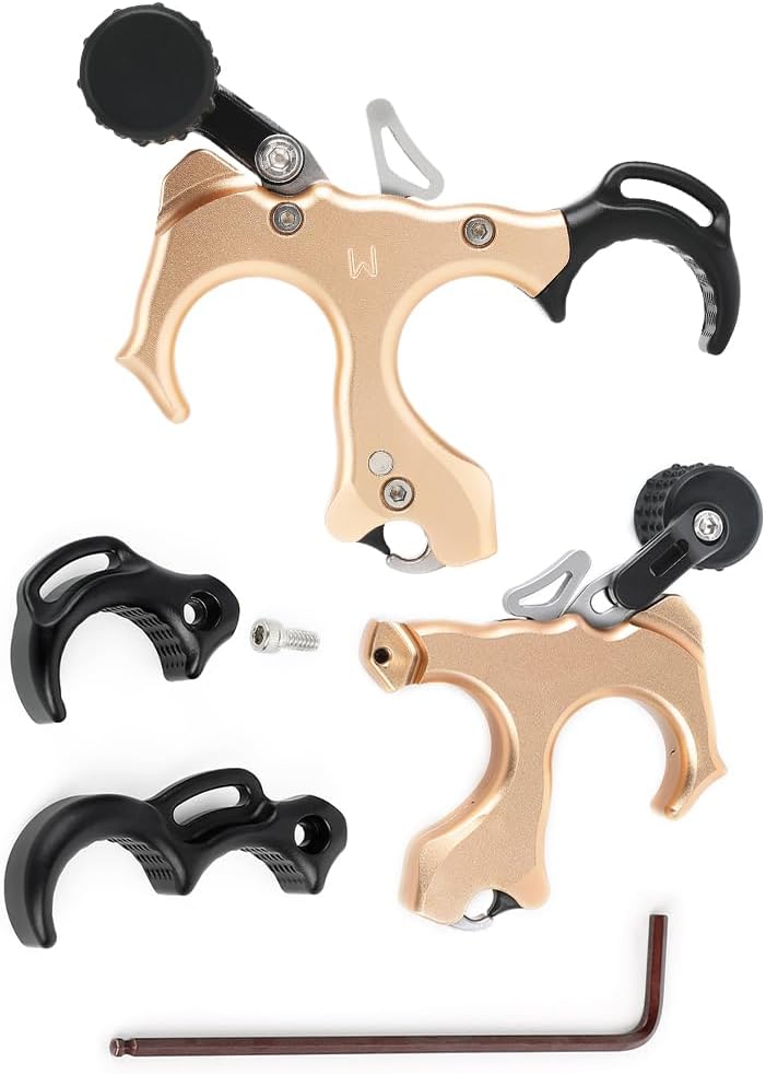 Specifications: Item Name:Release Aids Material: Aluminum Alloy Net Weight:94.7g(4finger) Package weight:about237g Finger:4 Finger Jaws close:Manullay Draw Weight:The maximum pull 500 pounds Sensitivity :Sensitivity Adjustment For bow Type: Compound bow The above parameters are all manually measured and may have deviation. Please refer to the actual item received.