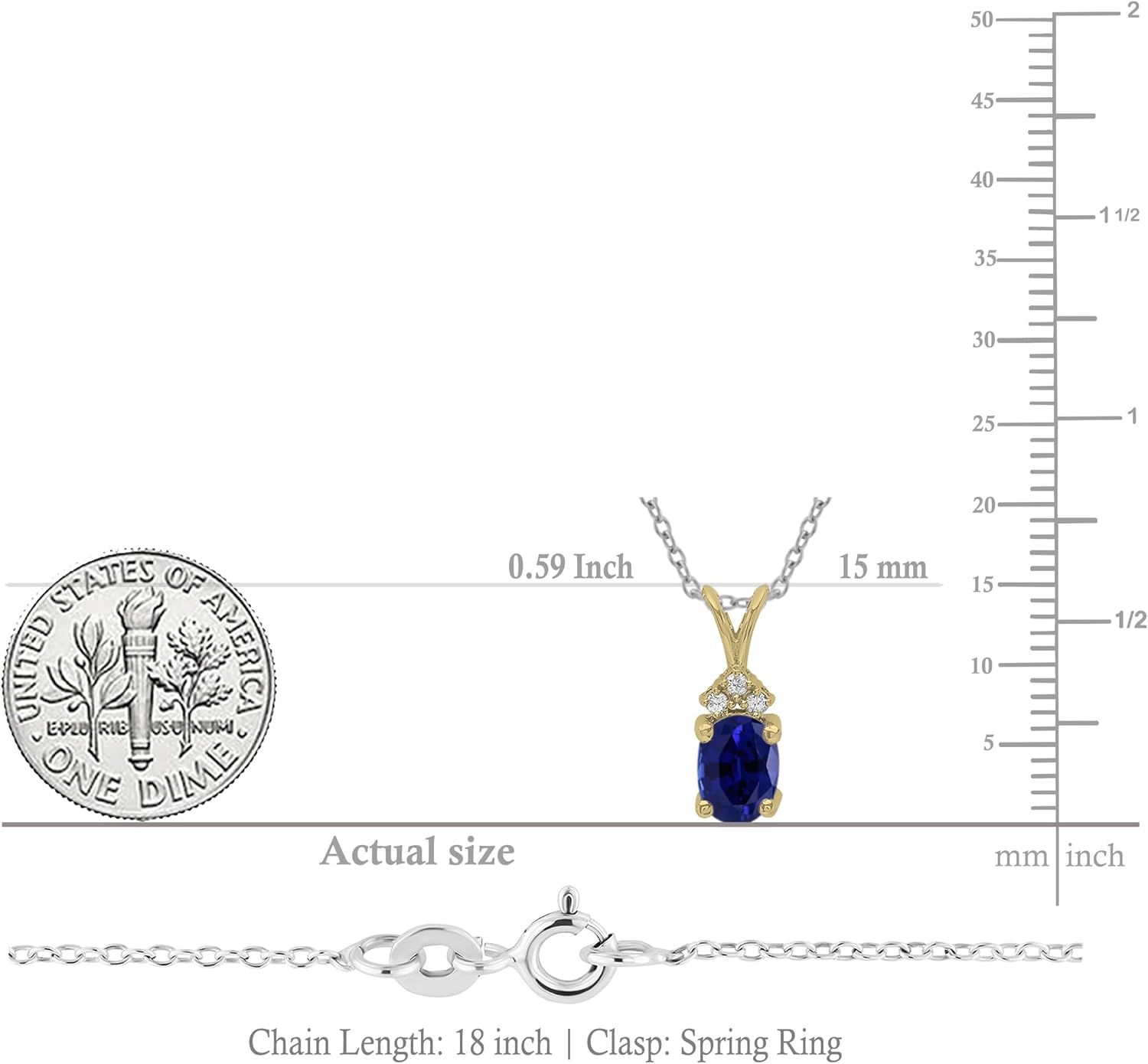 This lovely pendant feature oval Lab Created Gemstone & 0.05 ct. White Diamonds prong setting. All White Diamonds are Natural & non-treated, minimum diamond color is I-J & clarity is I1-I2. Our product includes a complimentary jewelry box for safe storage and presentation. It comes with 18 inch silver chain. SKU # LC2125-6200-18K