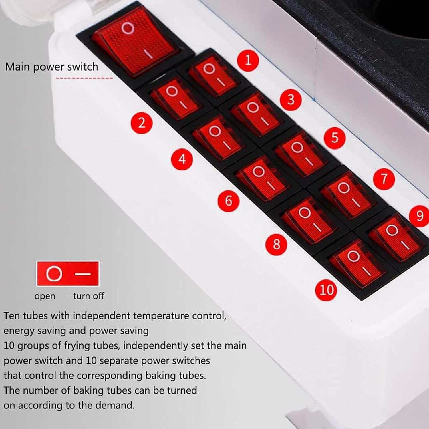 As fast as 30 seconds each, the temperature rises quickly, ten frying tubes are alternately or simultaneously frying , 5 to 6 minutes can complete 10 delicious egg sausages, produce quickly and efficiently.Specification:Rated voltage: 110-240VRated power: 1400WProduction time: 7-9 minutesWeight: 4.5 kgProduct size: 410*220*230mmInner tube size: 32*180mmPackage includes:1*Electric egg sausage machine1* brush oil stick1* Oil can1* oil brush1* cleaning brush1* Bamboo stick1* Bottom plug removal and assembly handleNote:Please allow the slight color difference caused by the shooting light and 1-3 cm error due to manual measurement.