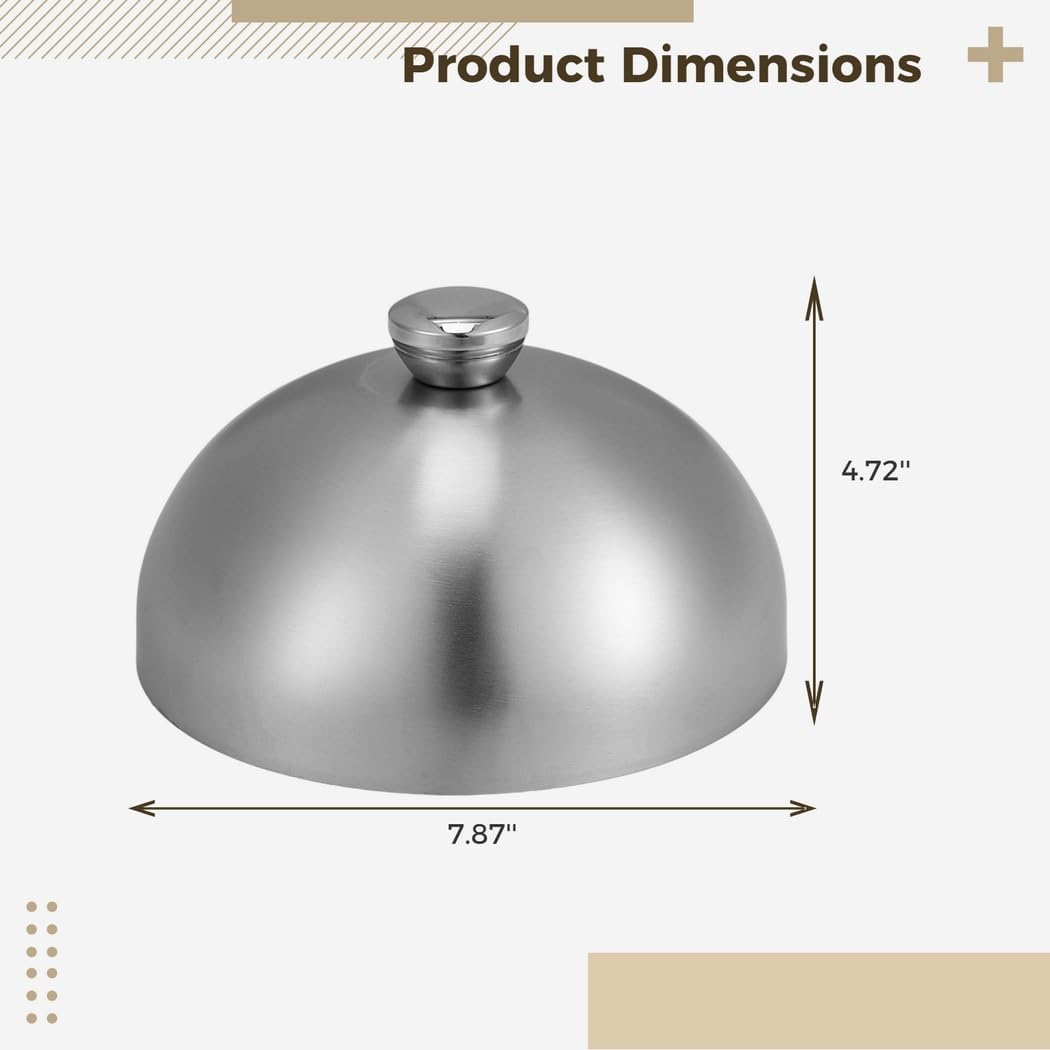 Color: silver Material: stainless steel Size: 7.87*4.72''(D*H) Package Includes: 1 x burger cover Note: - Please refer to the measurement. Tiny measuring error is allowable in normal range. - There might be a little color difference due to the monitor, camera or other factors, please refer to the physical item.