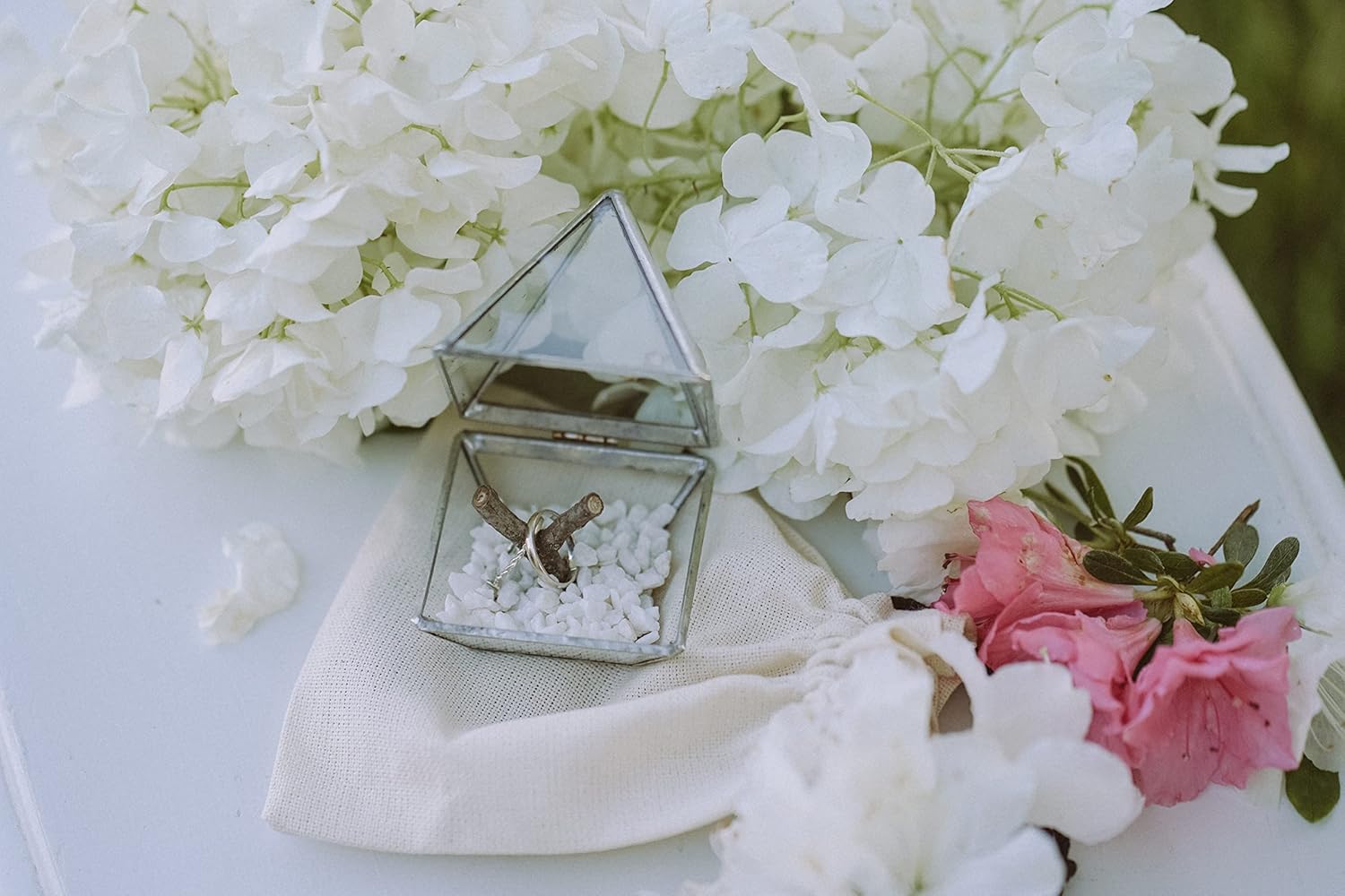 Wedding ring box with wood stick and moss is a special box for ceremony. You can put rings on wood stick and it will be look as on photos. Comfortably fits one or two rings. Ring bearer pillow will be stored for centuries and be passed from generation to generation. Engagement ring box will remind you about the most beautiful and romantic day in life. -Ssize: 2,7'x2'/ 7x5 cm. - 2 mm glass pieces, hand cut and individually wrapped in copper foil tape - soldered together for strength and durability - you can choose color of seams: silver, black or copper - carnauba wax for protection against air oxidation - 1 business days for creation before shipping - wood stick for rings may differ from those shown in the photo. - moss and white small stones are include You will receive a shipping notification and a tracking number (if applicable) as soon as your item ships. All packages are insured. If you want to get the product to other dimensions and proportions, we are happy to make it to custom order. Please contact us if you have any questions about this product.