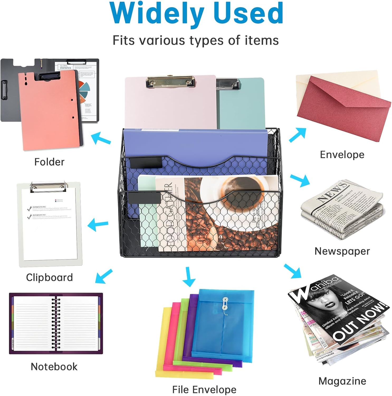 NiOffice Magnetic File Organizer 3-Pocket Fridge Mail Organizer Vertical Magazine File Holder Wall Mounted Refrigerator Cabinet Wall Organizer No-Drill Mount Hanging File Organizer Office Home (Black)