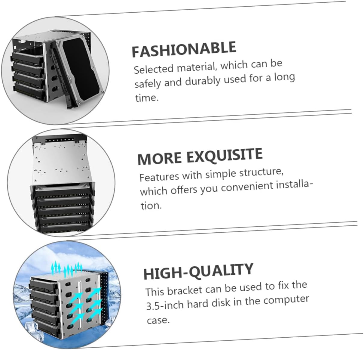 Package Include 1 x 5-Layer Hard Driver Storage Bracket 10 x Plastic 1 x Fan Characteristics - Size:16.50X14.50X12.50cm/6.48X5.70X4.91inch. -Product Info:Hard disk cage - Color: Mainly silver. - Material: Stainless steel. - Perfect for the 3.5 inch hard disk position of the main case of ordinary desktop computer Hard Disk Accessories. - Manufactured with , with excellent durability and practicality. - Special design and it is in fine craftsmanship. It is the best replacement for your old, broken one Multi-layer Hard Disk Rack. - Fine workmanship and appearance ensure its popularity and practicality Hard Drive Tray. - It is in stable characteristics, high performance and it is in great reliability, simple, easy to install Hard Drive Bracket.Goods DescriptionHard Drive Bracket If you are looking for a professional and 3.Hard Drive Mounting Bracket Adopted of , it is practical and durable for long time use.Hard Drive Accessories It is easy to use and bring you much convenience.Hard Drive Mounting Kit 5 inch hard drive cage, then your research is over here.Hard Drive Tray That's because our product can meet your need.Multi-layer Hard Disk Rack It is in stable characteristics, high performance and it is in great reliability, simple, easy to install