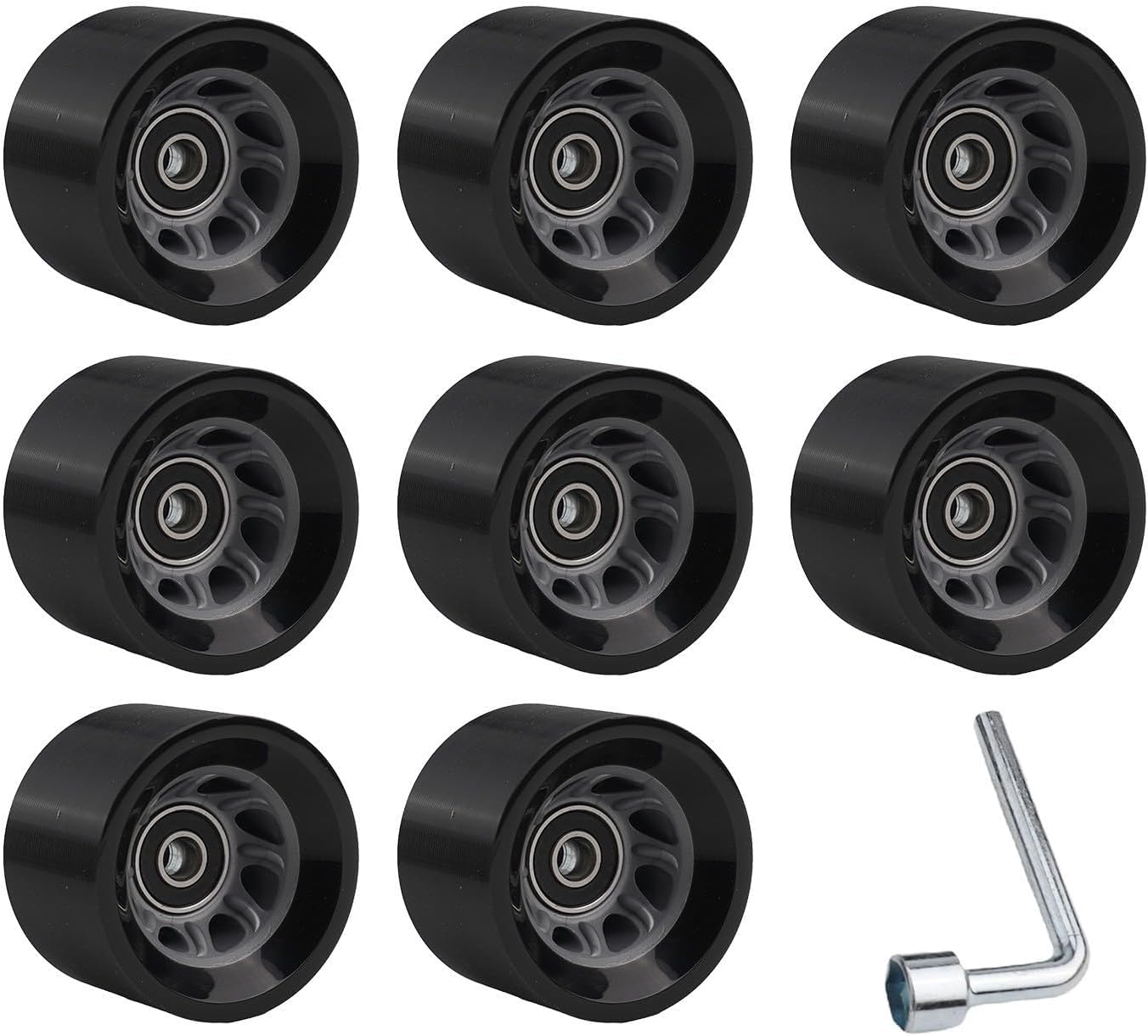 Features:* Made of polyurethane polymer material, non-slip, wear-resistant and highly elastic* Using high carbon steel bearings, long service life, stable and fast speed, low noise* High elastic PU, good shock absorption effect* A variety of hardnesses are available, suitable for various occasions, indoor, outdoor, asphalt roads, parks, etc.* Suitable for inline skates and quad skateboardsSpecifications:*Product Name: Roller Skate Wheels*Material: PU+high carbon steel*Size: approx.58mm*39mm*Color: As shown in the picture*Weight: about 950g/set* Hardness: 82A/90A/92A/95APackage Content:8 x Roller Skate Wheels1x Wrench