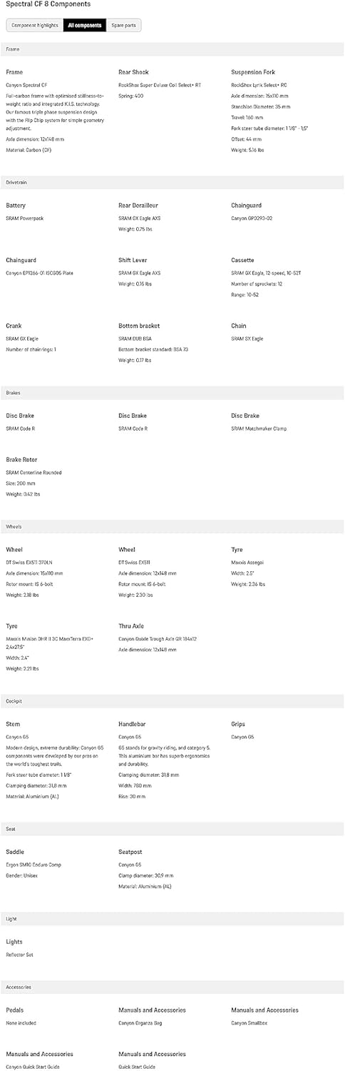 | Warranty Description | 6 year warranty on Canyon Engineered Components, All other components follow components manufacturers warranty policy |