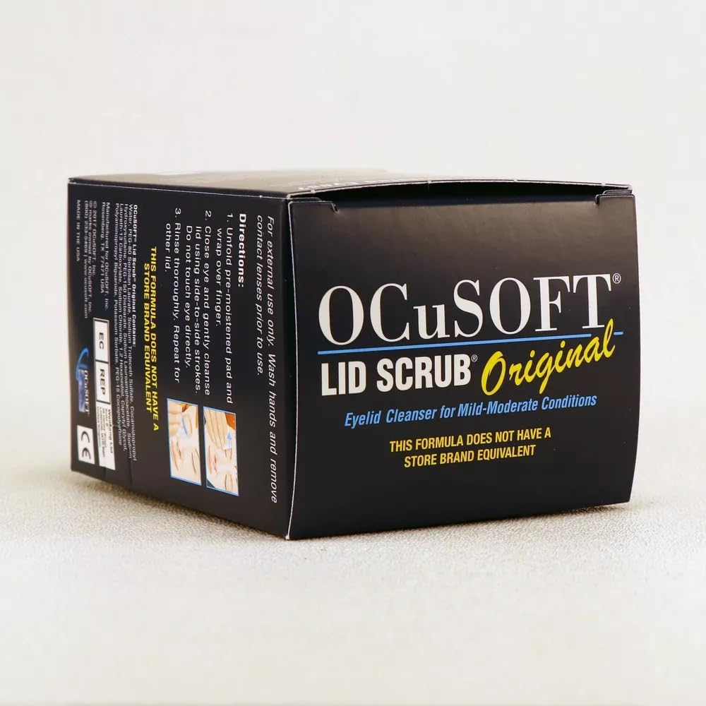 Manufacturer # 1313774 Brand OCuSOFT Lid Scrub Manufacturer Ocusoft Application Eyelid Cleanser Container Type Bottle Dosage Form Pad Generic Drug Code 94200 NDC Number 54799-0301-90 UNSPSC Code 51241100 Volume 30 per Box Features Non-irritating eyelid cleanser that conveniently and effectively removes oil and debris that can contribute to dry, scratchy, and irritated eyelids 30 Each / Box