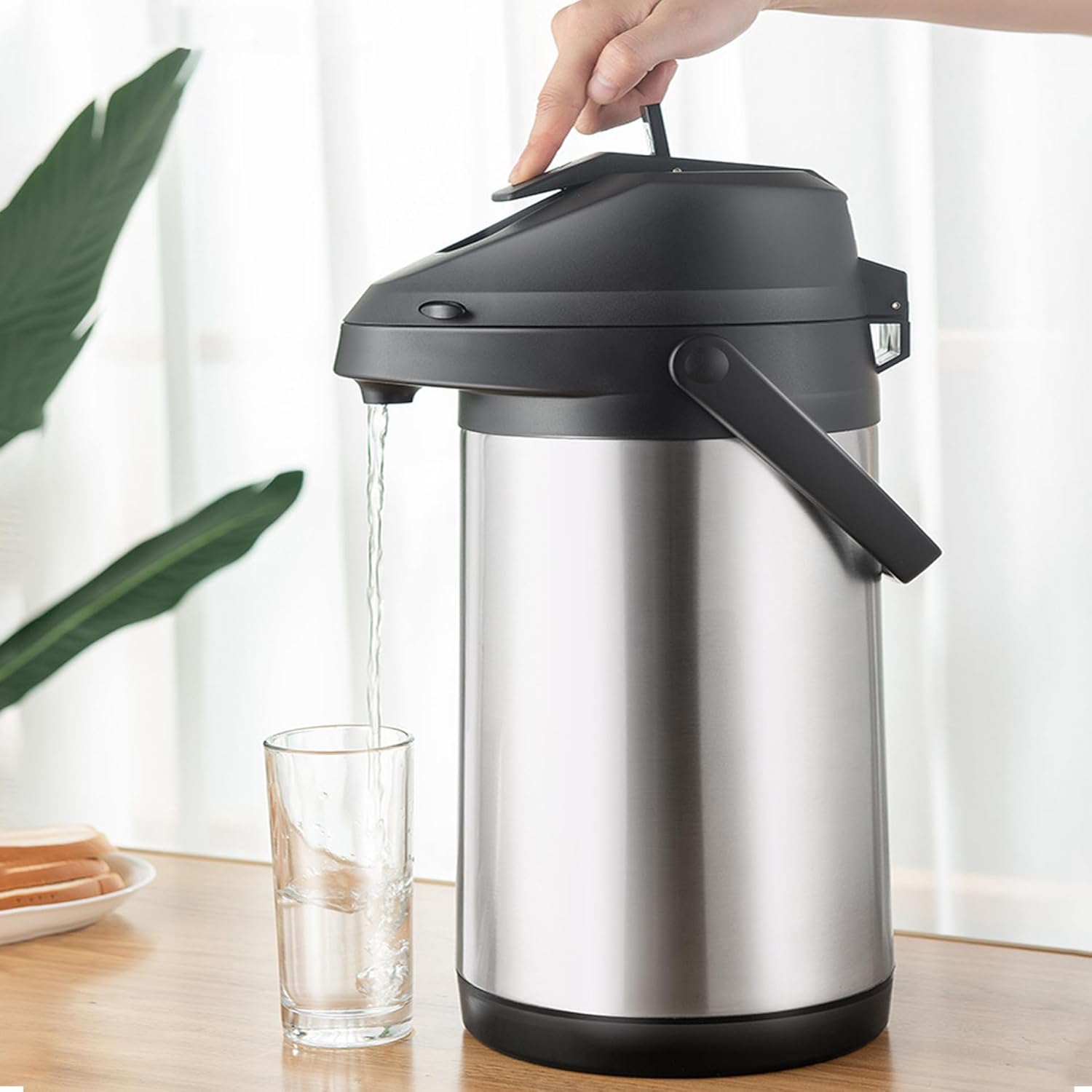 Description: Hot Water Dispensers, Stainless Steel Water Flask with Pump Mechanism, Lightweight and Robust with Carry Handle, Ideal for Hot and Cold Drinks combine premium stainless steel durability with a user-friendly pump that allows effortless dispensing of hot water or cold beverages; its lightweight design with a convenient carry handle makes it perfect for both indoor and outdoor use whether at home, office, or events while the efficient insulation preserves your drink's temperature for hours; spacious enough to serve multiple cups, it is ideal as a thermo flask for hot drinks or as a water dispenser for chilled refreshment, built robustly to resist dents and corrosion, ensuring long-lasting performance and reliability for everyday use. Features:. Hot Water Dispensers. -Color: Silver. -Material: Stainless Steel. -Size: about 17.5*35.8cm/6.9*14.1inch. Note:Manual measurement, please allow slight errors on size.The colors may exist slight difference due to different screens. Package Including 1Pcs Hot Water Dispensers