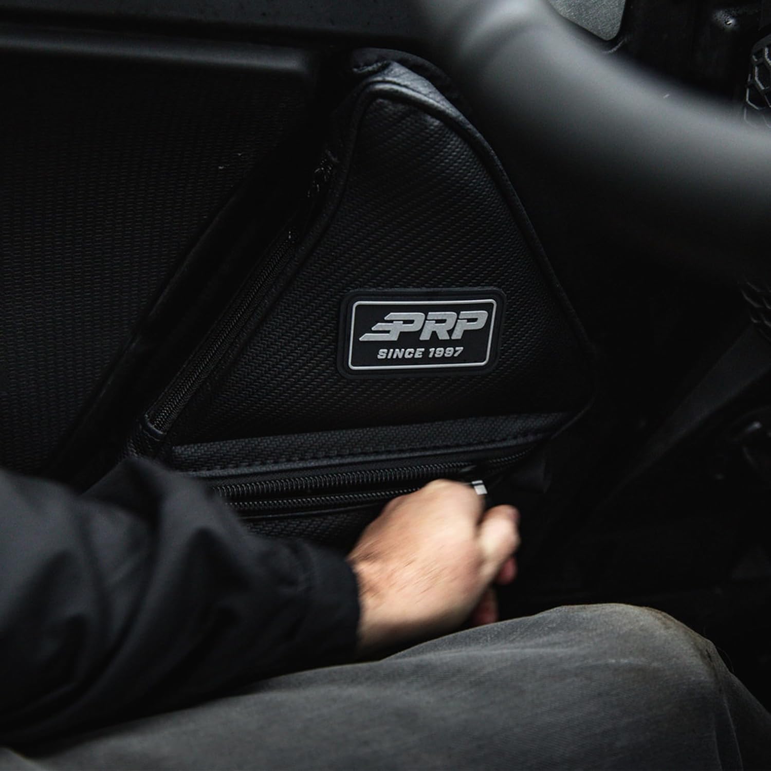 Protect your knees and add storage to your factory doors with PRP’s Front Door Bags with Knee Pad for 2025+ Polaris PRO XP, PRO S, or PRO R. These bags are great for holding onto the extra items you need while you ride. With storage space at a premium in UTV's, these door bags hold all your essentials. Conveniently located right next to you on the door (so you can still access items you need while strapped in your harnesses). Great for storing your cell phone, water bottles, goggles, glasses, keys, spare rags. The door bags keep these items secure, and protected from dust, mud, & dirt. Made from durable, puncture resistant vinyl that is water resistant. The upper storage compartment contains a thick foam cushion to protect your knees from banging against the door in rough terrain. Or if you want, remove this foam piece, and you can use that pocket as another storage compartment. Includes heavy duty zippers slide easily even when dirty, and have rubberized ends so they wont make noise as you drive. Each bag is designed to perfectly fit on the factory front doors of 2025+ Polaris RZR PRO XP, PRO S, or PRO R (2 and 4 door models). Each bag attaches to the door using the factory bolts, and several push pins (drilling required). Sold as a pair (Driver and Passenger). Fitment: 2025 and newer Polaris RZR PRO XP, PRO XP4, PRO S, PRO S4, PRO R, PRO R4 with OEM doors. *Does not fit on 2020-2024 RZR Models. Check out our other PRP Door Bags that fit those years